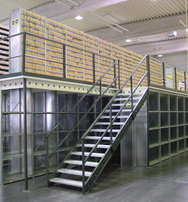 In these cases, it is possible to install mezzanines with which raised areas are created to increase storage space.